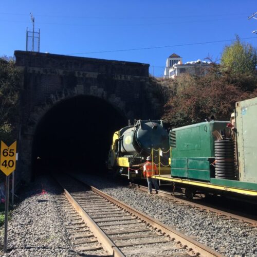 Drill Tech has completed a variety of railroad projects, ranging from ground support to emergency repairs to shotcrete placement. For projects requiring horizontal elements, we’ve installed tiebacks, soil nails, and battered micropiles. We’ve also updated existing rail tunnels using roadheaders for clearance notching to allow our clients to convert to double-stack service. Drill Tech has re-mined existing rail tunnels that have collapsed or even, in one case, caught fire. We’ve installed foundations at a broad range of diameters and depths using our fleet of modified drills customized specifically for railroad projects. Our teams have also placed shotcrete, grout, and CIDH concrete using rail cars.