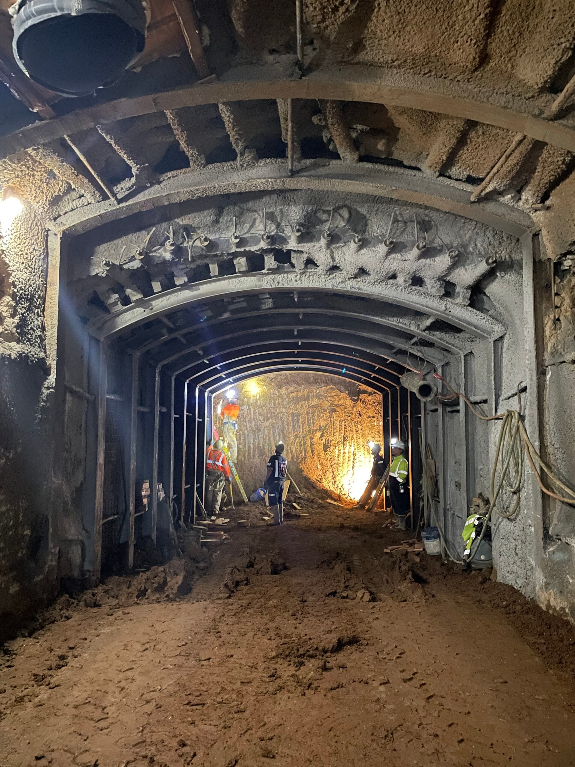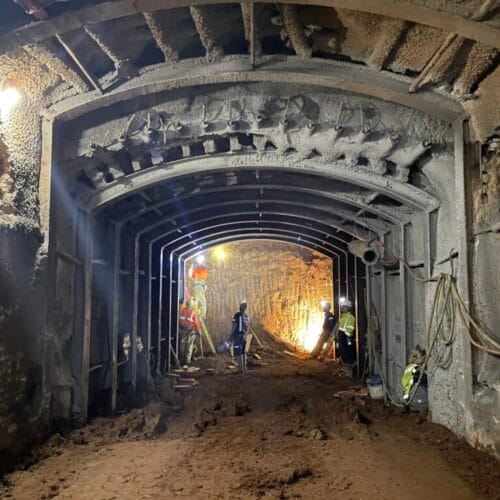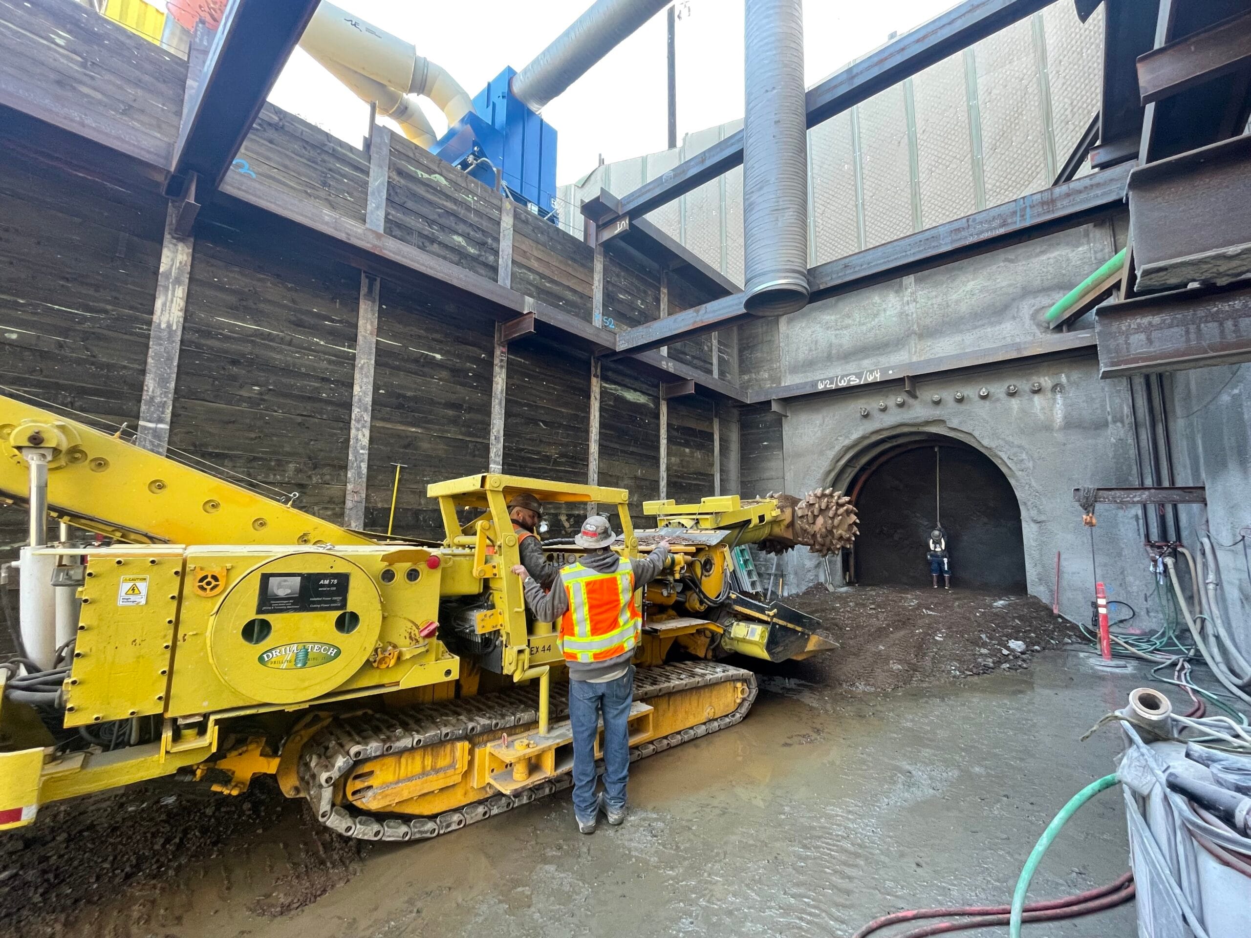 This project consisted of new tunnel development to operate as part of a creek flood stormwater diversion for the urban region of Morgan Hill, California. In addition to SEM tunnel construction, Drill Tech designed the temporary shoring (8,700 SF of drilled soldier piles with internal bracing, timber and shotcrete lagging) and perimeter sound wall for the portal.
