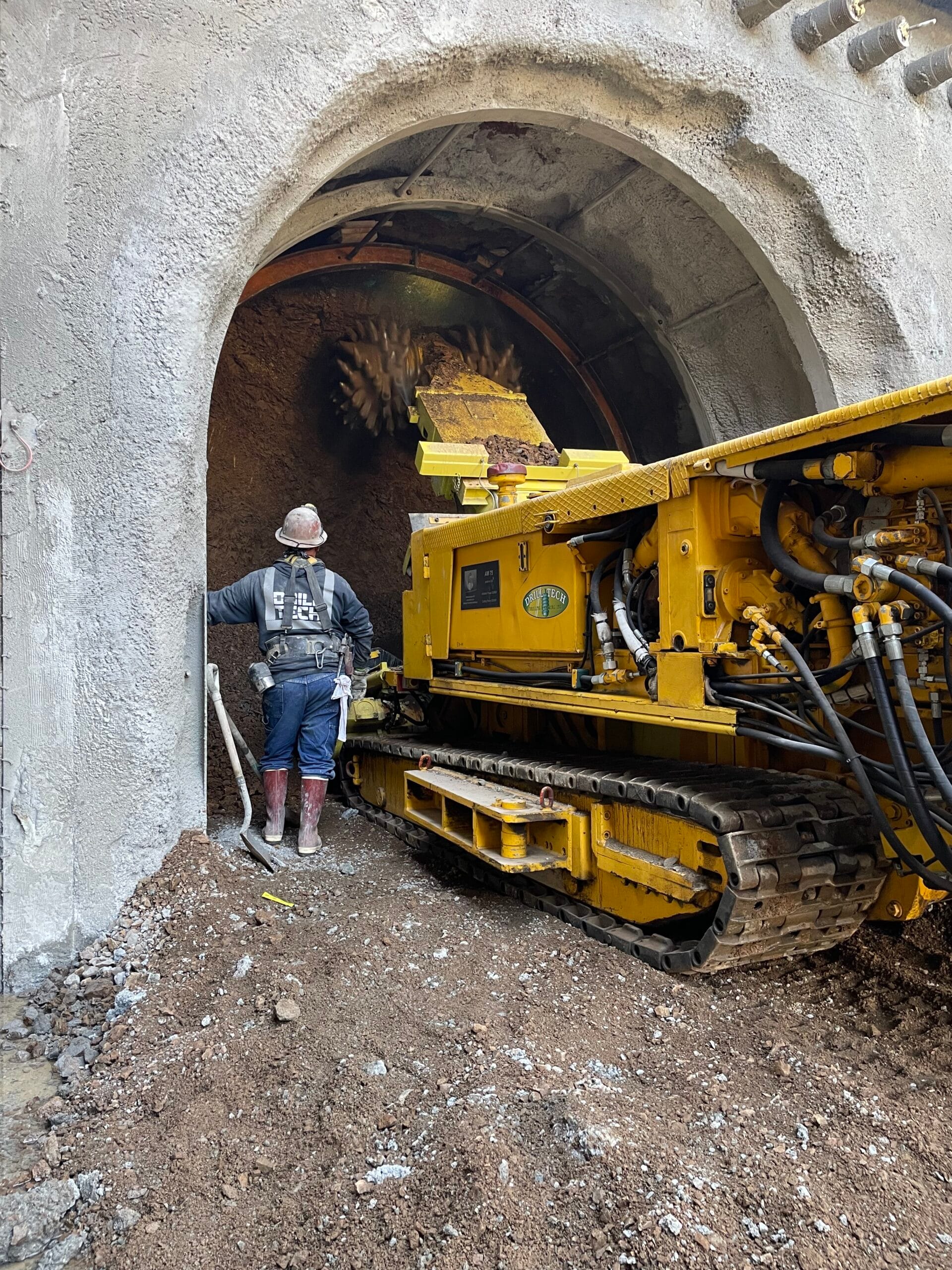 Proactive coordination, communication, and monitoring were necessary components to the success of Drill Tech’s operations. Construction of the tunnel took place under existing surface streets in the middle of a narrow easement for the tunnel alignment as granted by the City. These critical areas with low cover (7′ at the shallowest) required monitoring ahead of excavation to establish reliable data records and sequencing plans. Since portions of the tunnel utilized blasting excavation just a few hundred feet from dozens of homes, communicating on blasting times with the client and third parties’ interests were vital to the project. The value engineering that eliminated pre-excavation grouting from the surface street grade to within the tunnel minimized project impacts to local residents.